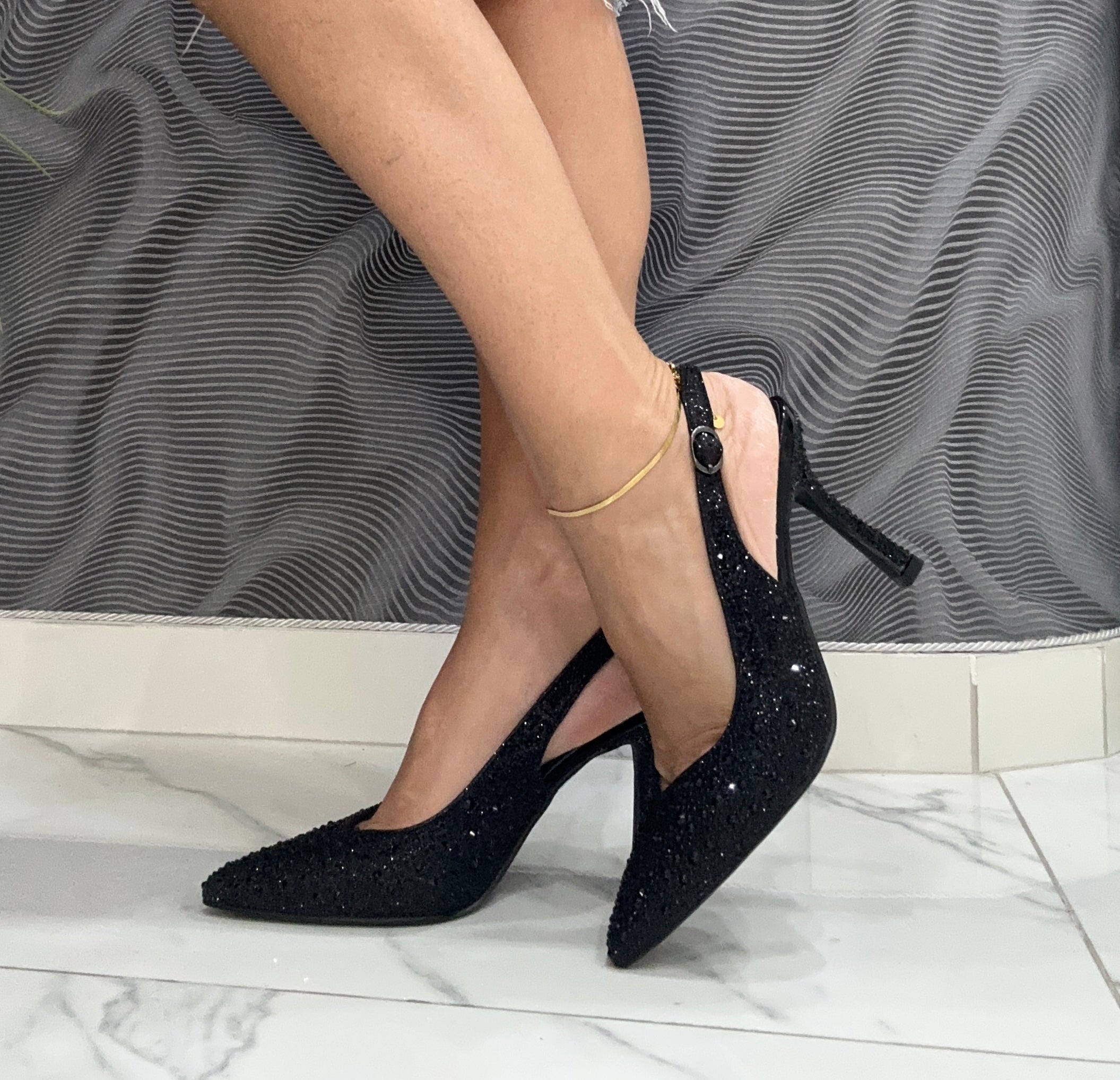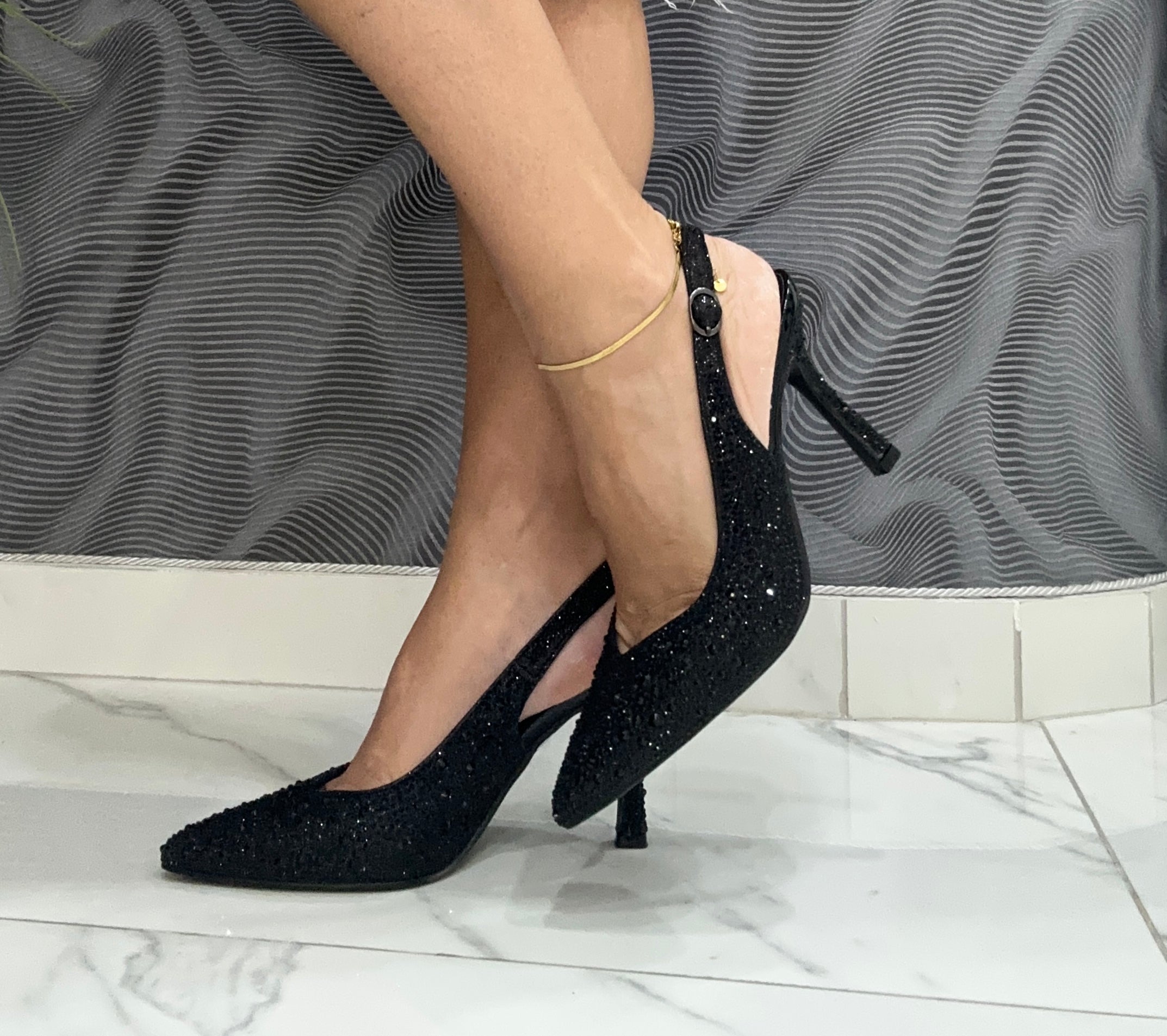 La Chanel Farah presenta un design scintillante e un elegante tacco alto di 10 cm, che valorizza la silhouette con raffinatezza. La calzata è comoda e regolare, garantendo stabilità e comfort anche durante un uso prolungato. Una scelta sofisticata per chi cerca stile senza rinunciare al benessere del piede.