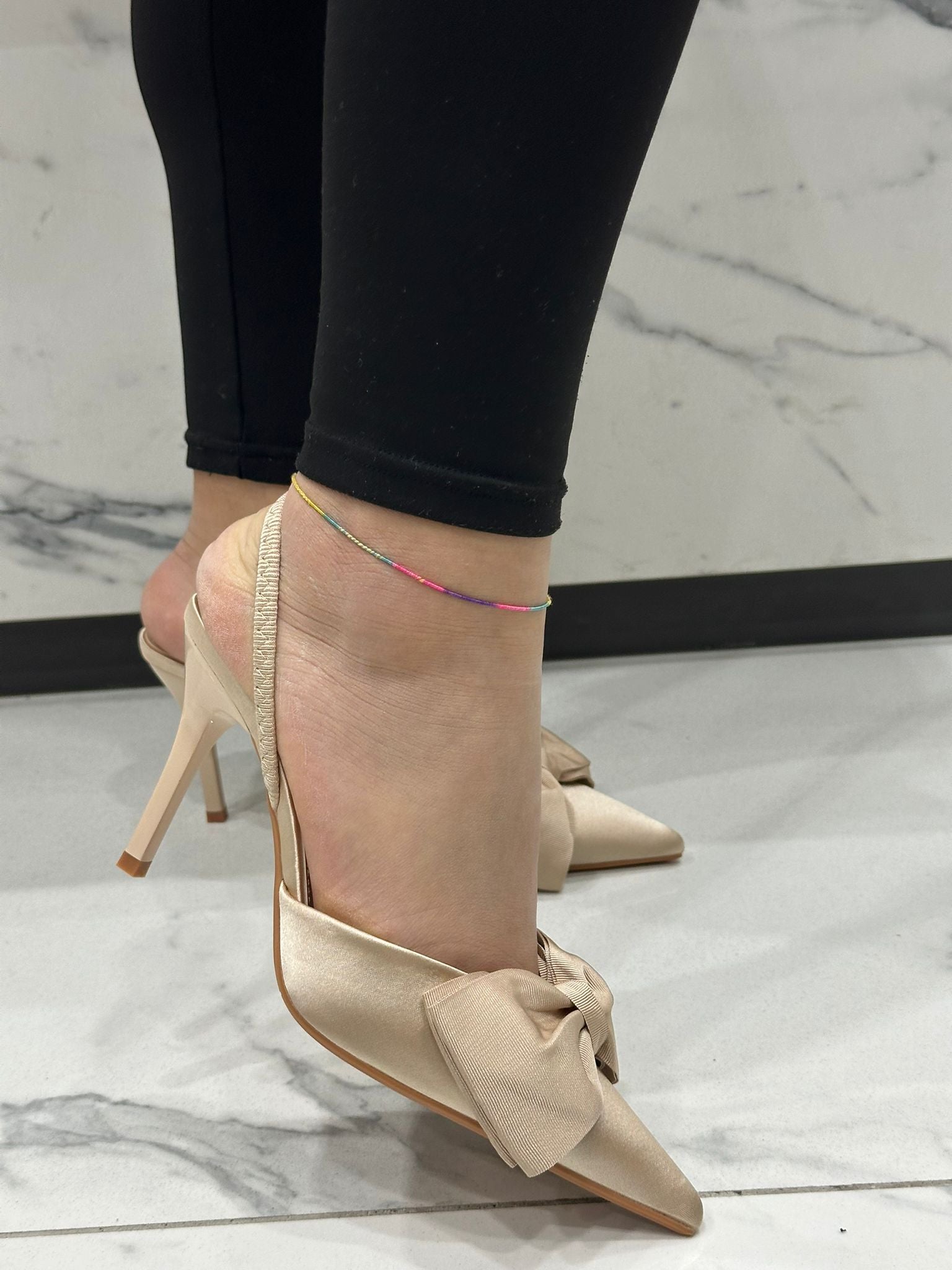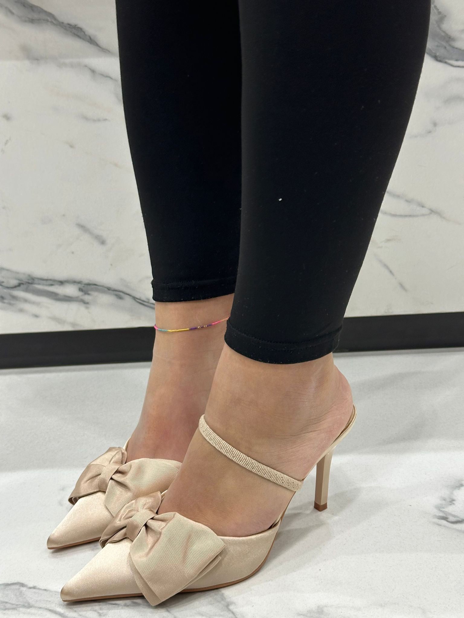 Elegante chanel in raso con fiocco applicato, perfetto per occasioni speciali e serate raffinate. Il tacco di 9 cm garantisce un'altezza lusinghiera mantenendo comfort e stabilità. La silhouette sofisticata e il dettaglio del fiocco conferiscono un tocco di femminilità senza tempo. Ideale per chi ricerca una scarpa versatile che passa dal giorno alla sera con stile impeccabile.