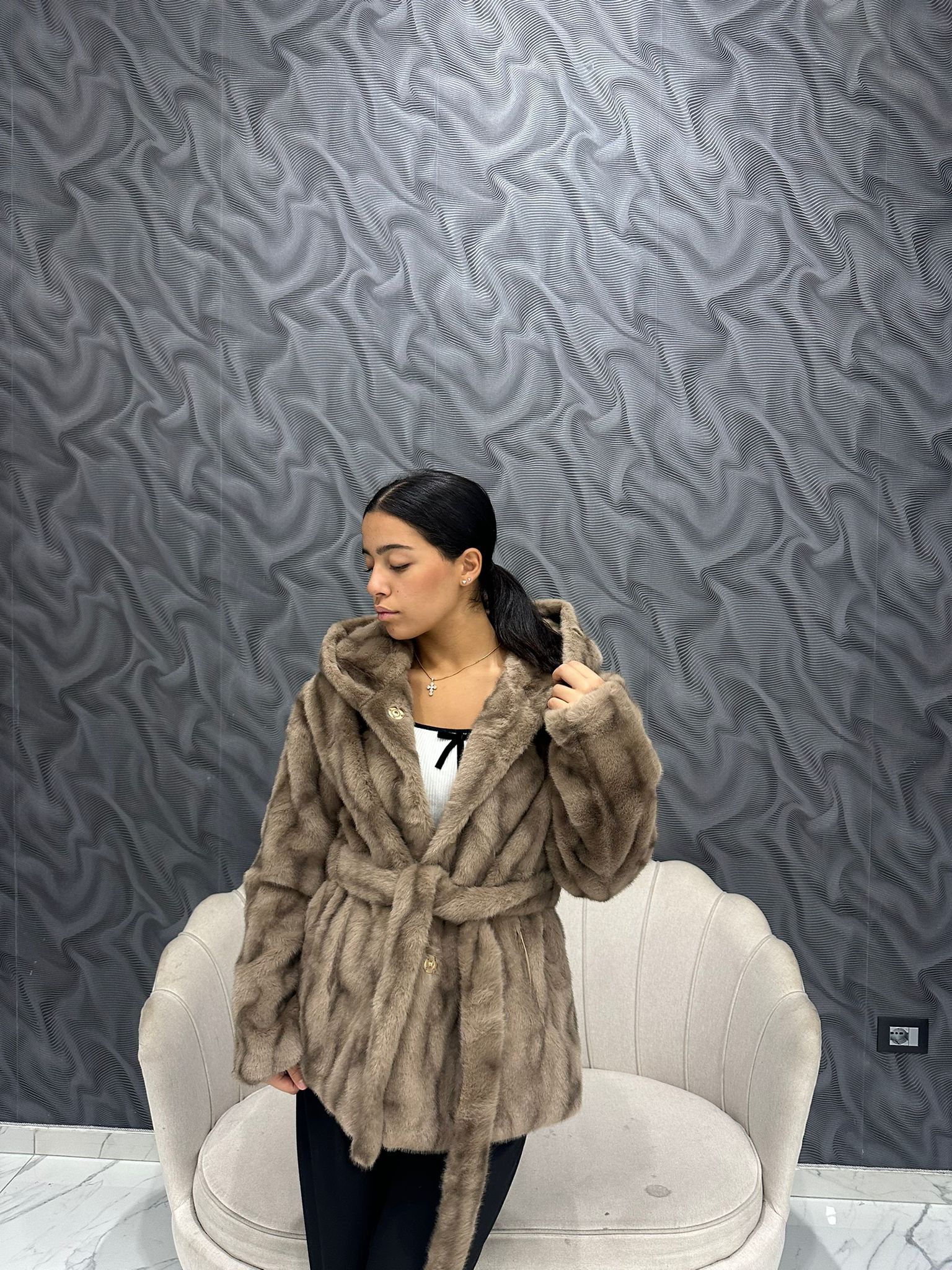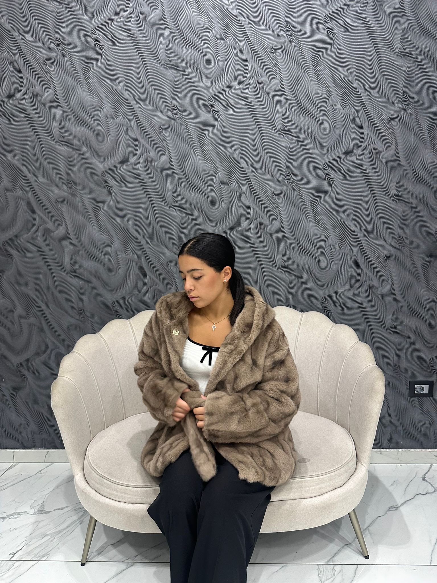 Questa pelliccia ecologica con cappuccio e cintura rappresenta una scelta sostenibile senza rinunciare all’eleganza. Realizzata con materiali di alta qualità, offre un’ottima protezione dal freddo mantenendo leggerezza e comfort. Il cappuccio aggiunge versatilità e protezione extra, mentre la cintura permette di definire la silhouette con stile. Perfetta per affrontare le giornate più fredde con un tocco raffinato e consapevole.
