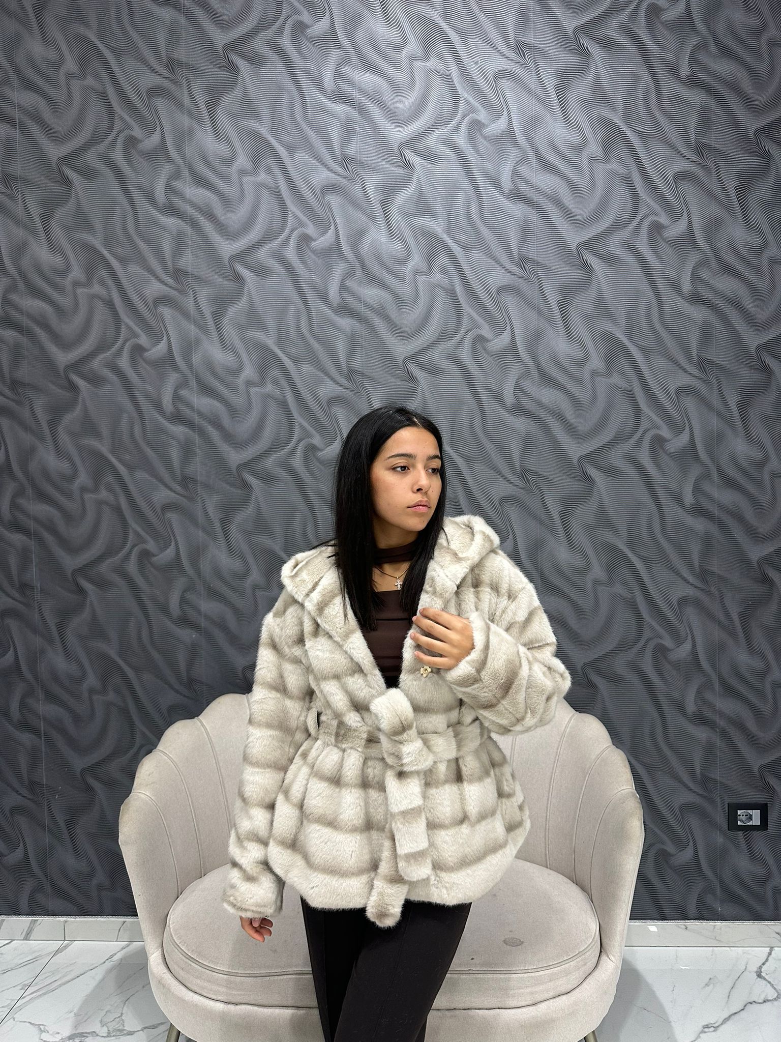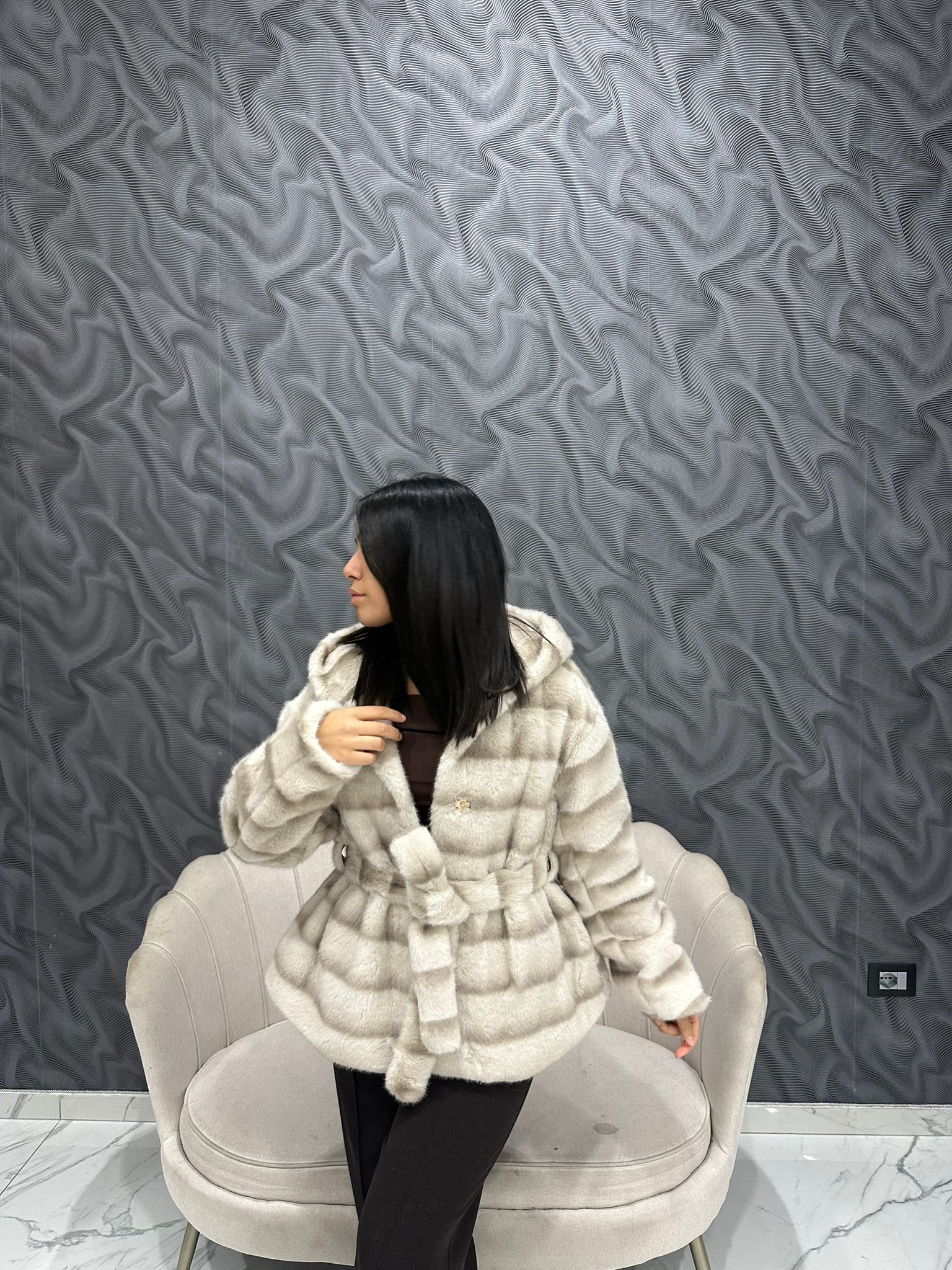 Questa pelliccia ecologica Sandra PJ8015 con cappuccio e cintura combina stile e funzionalità, offrendo un’alternativa sostenibile alla pelliccia tradizionale. Il cappuccio garantisce protezione aggiuntiva dal freddo, mentre la cintura definisce la silhouette per un look raffinato. Perfetta per chi cerca un capo elegante senza rinunciare all’impegno verso l’ambiente.