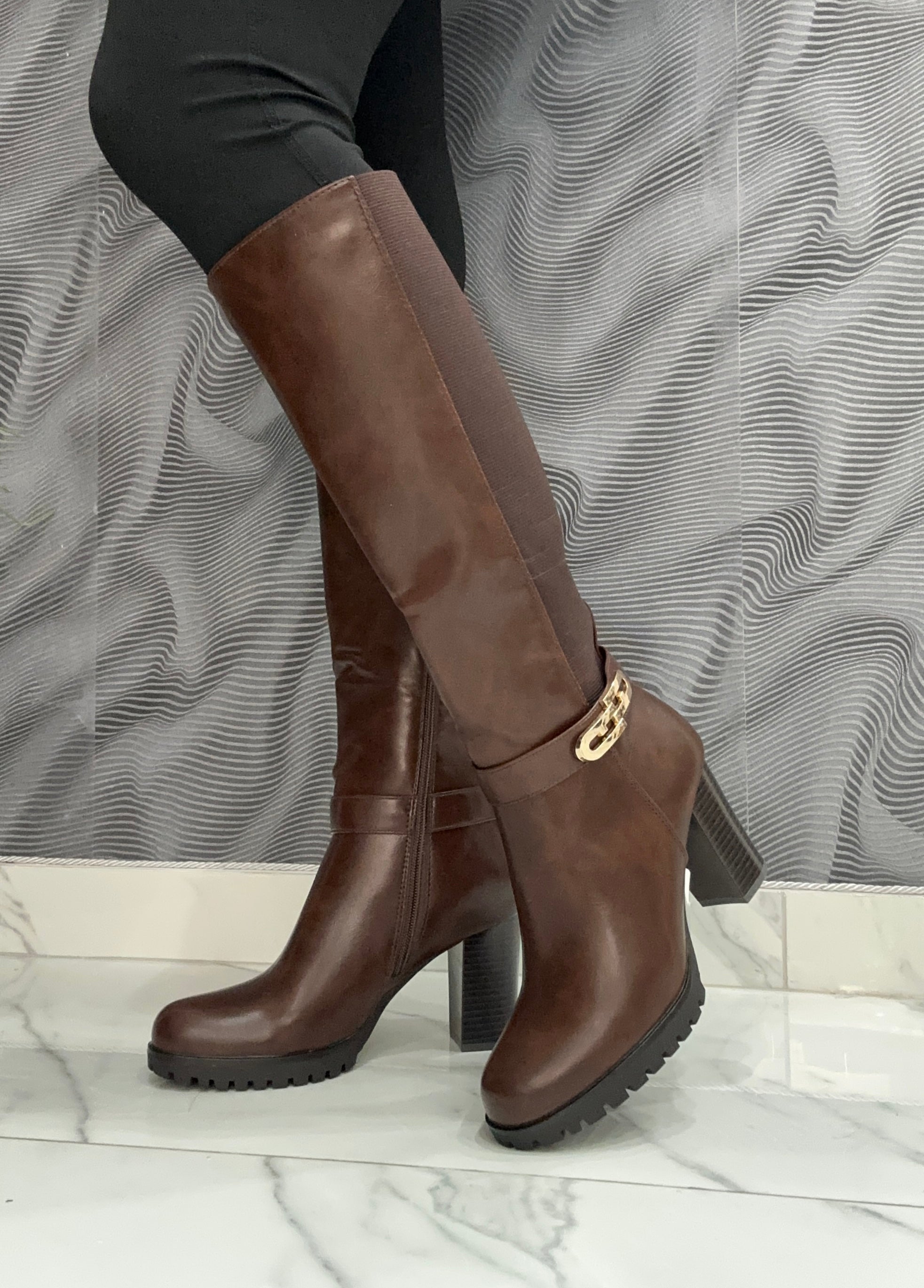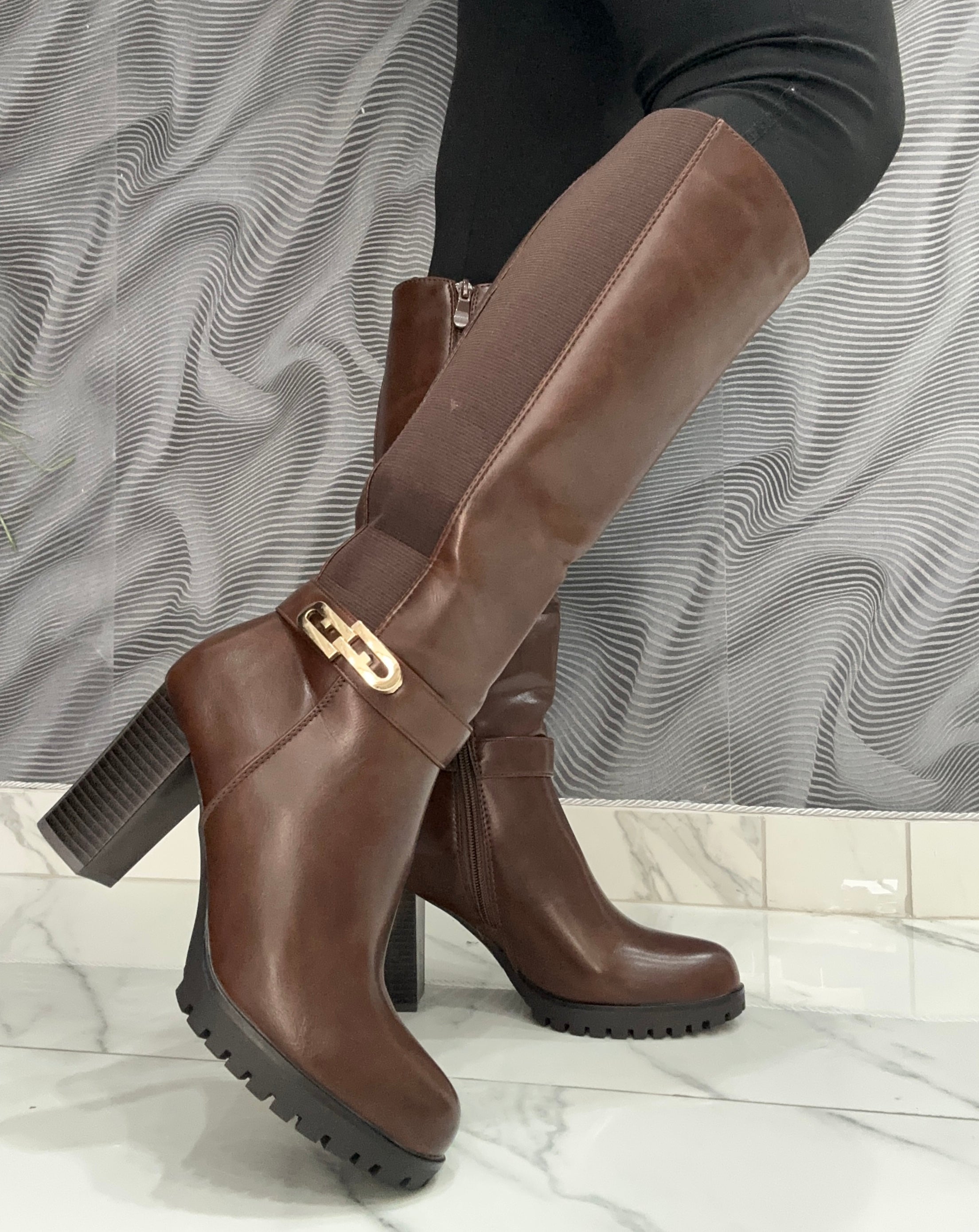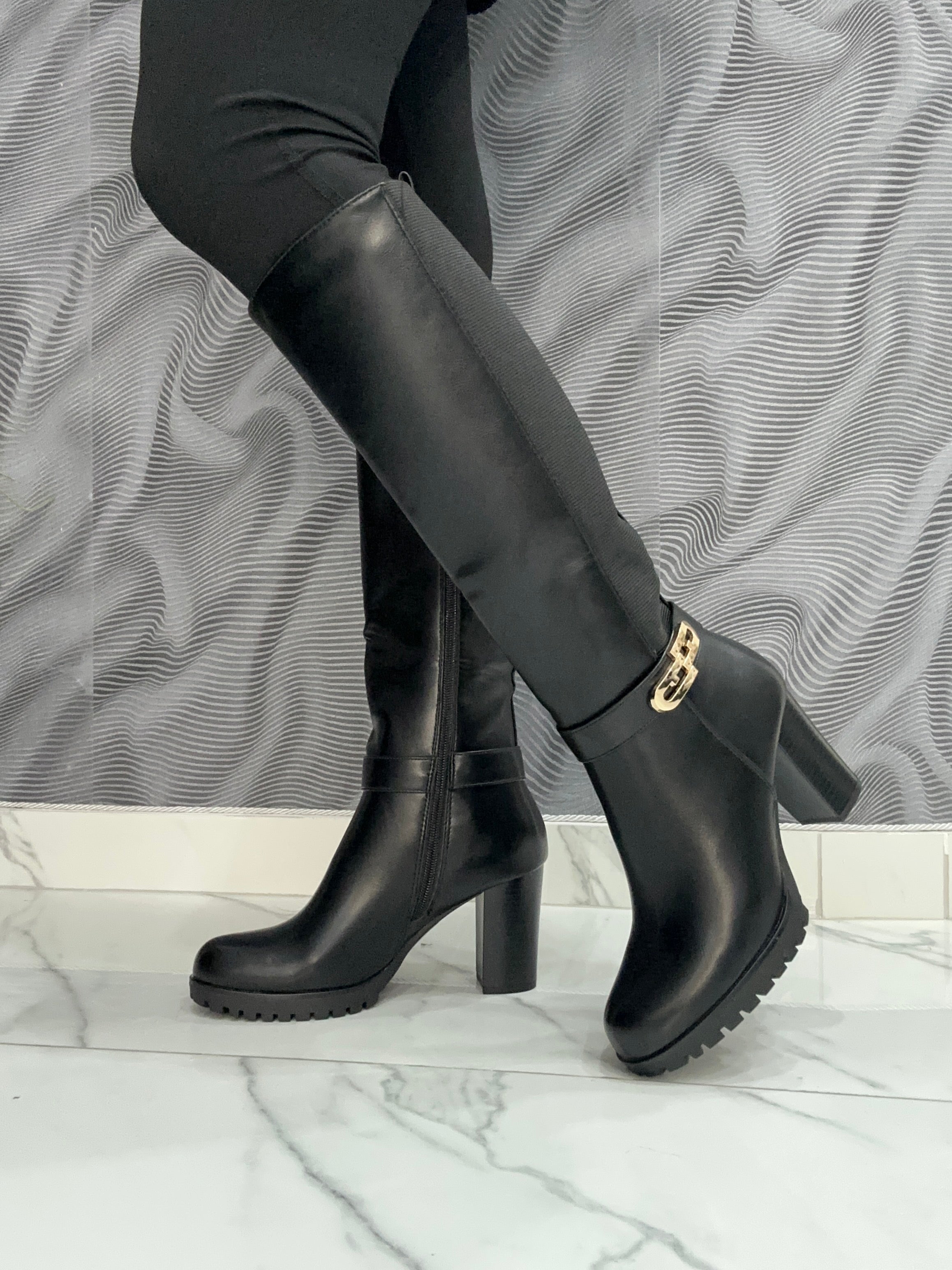 Lo Stivale Fabiana combina eleganza e praticità grazie alla sua ecopelle di alta qualità, arricchita da un raffinato dettaglio oro laterale. Il design con elastico e zip facilita la calzata, offrendo comodità e una vestibilità regolare. Il tacco largo di 8 cm garantisce stabilità e comfort per tutto il giorno, rendendo questo stivale la scelta ideale per uno stile sofisticato senza rinunciare al benessere.