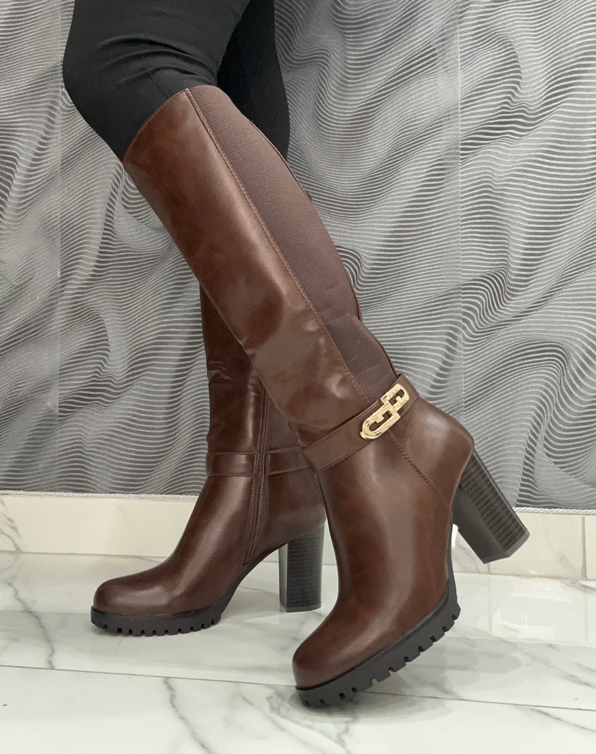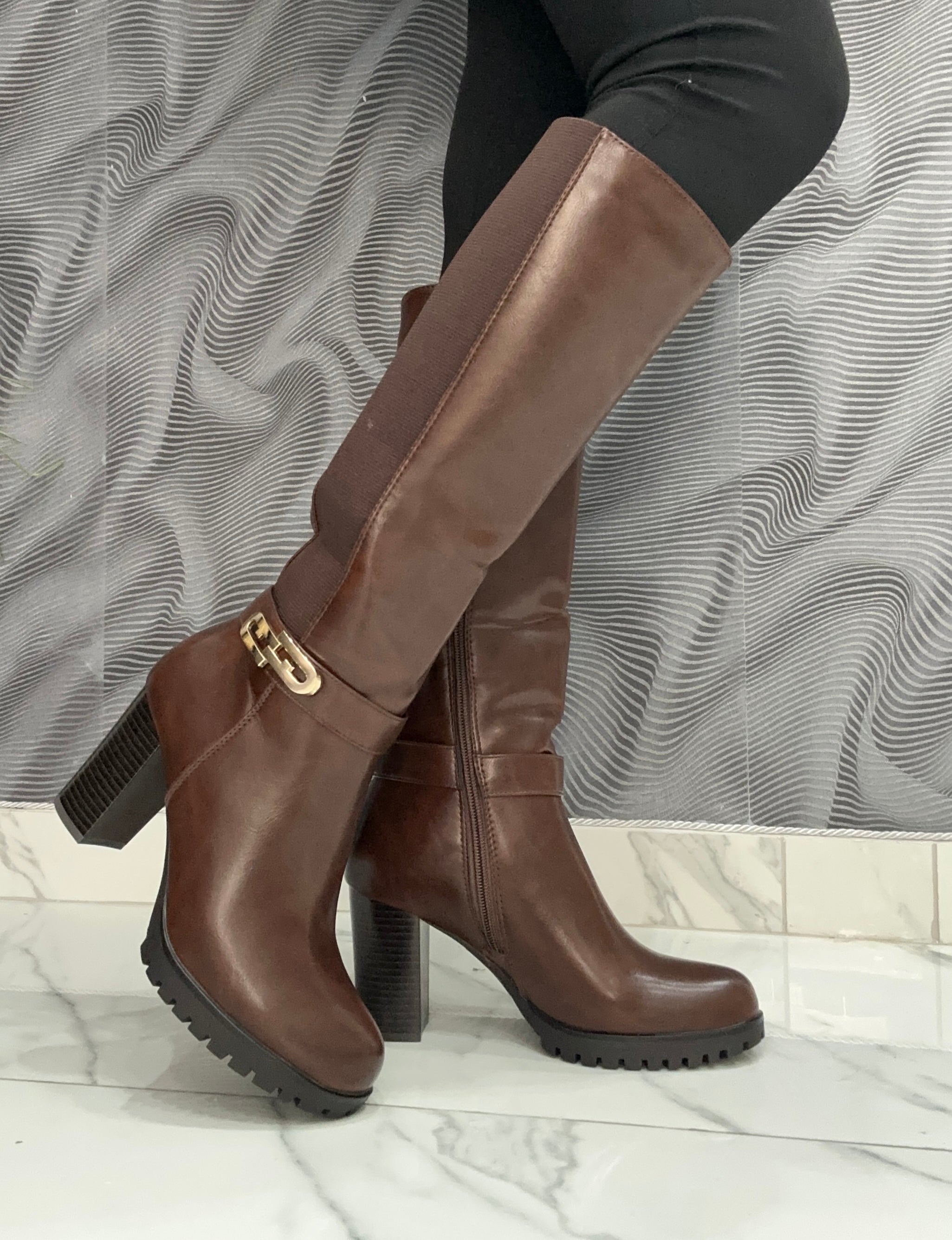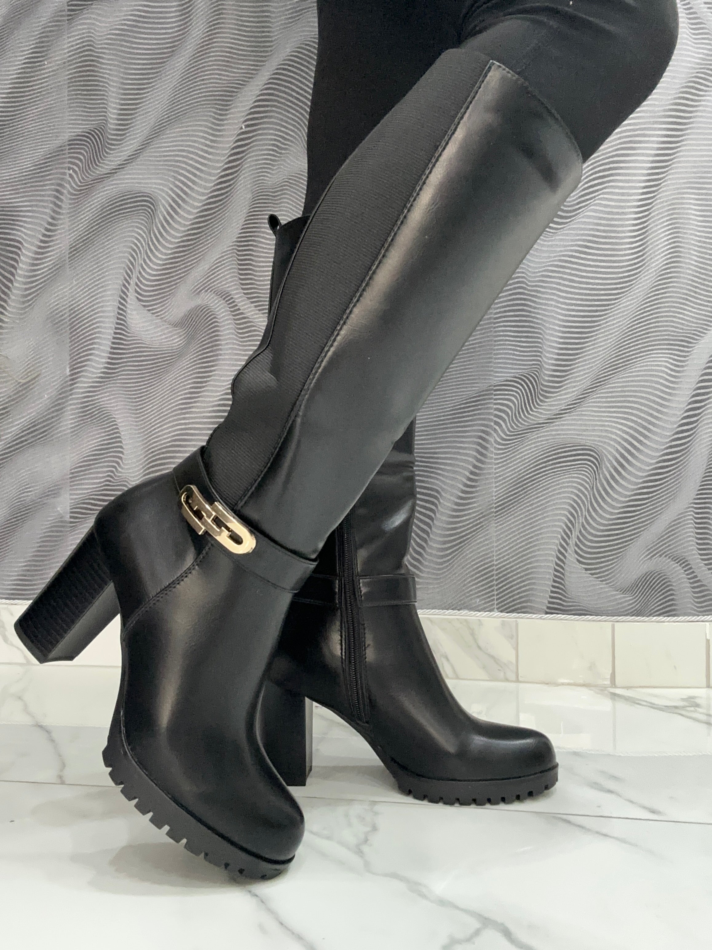 Lo Stivale Fabiana combina eleganza e praticità grazie alla sua ecopelle di alta qualità, arricchita da un raffinato dettaglio oro laterale. Il design con elastico e zip facilita la calzata, offrendo comodità e una vestibilità regolare. Il tacco largo di 8 cm garantisce stabilità e comfort per tutto il giorno, rendendo questo stivale la scelta ideale per uno stile sofisticato senza rinunciare al benessere.