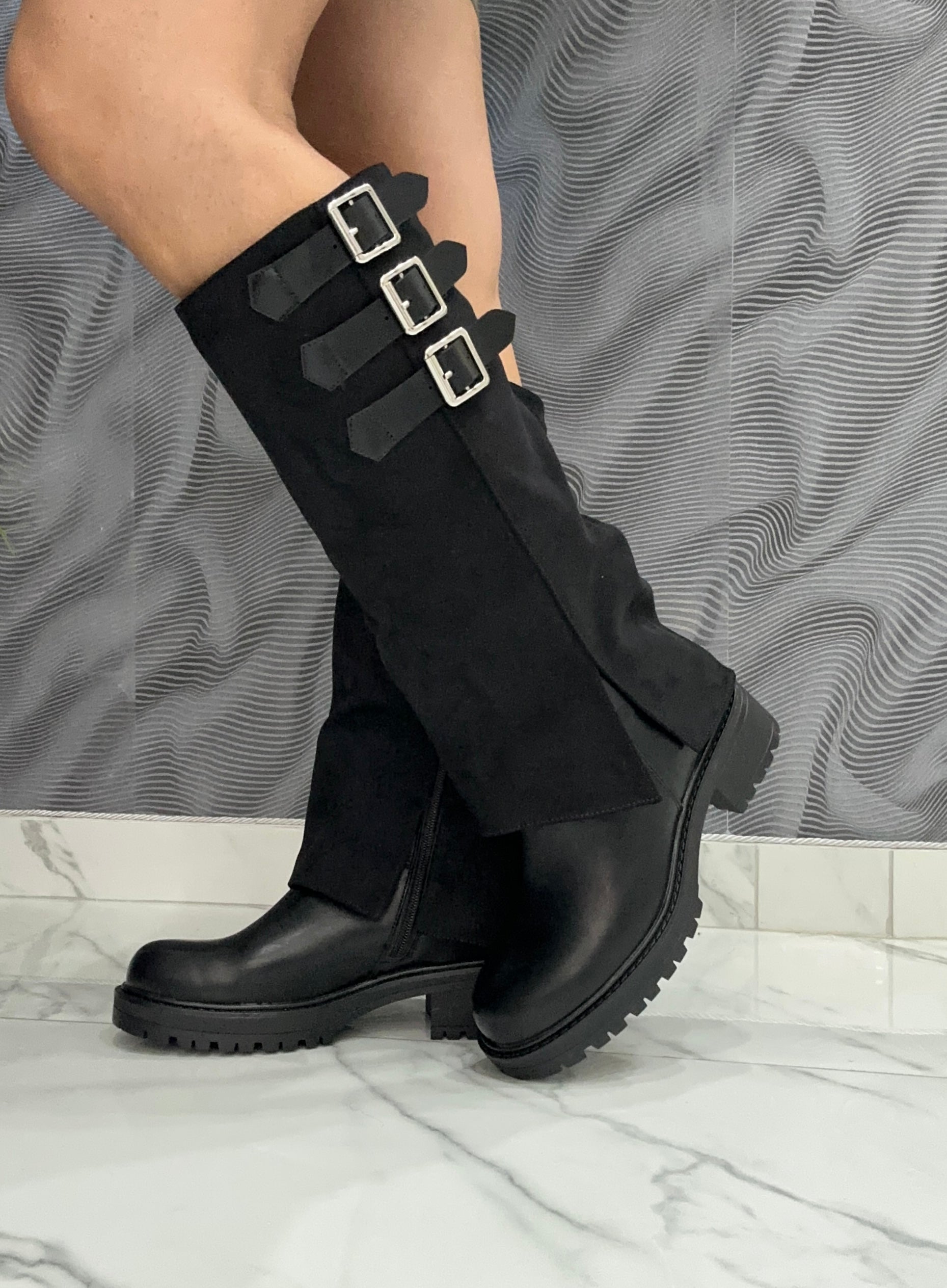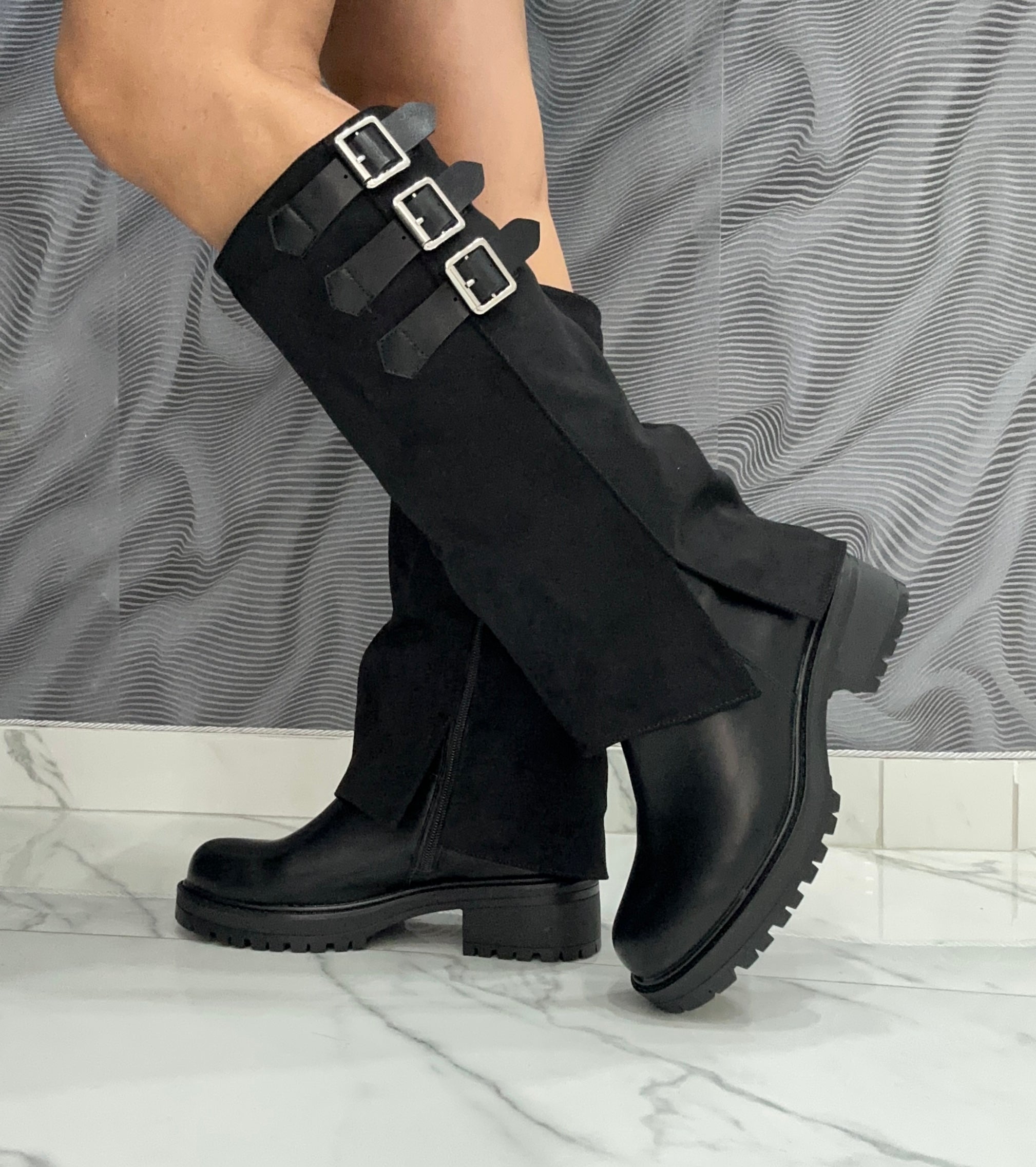 Lo stivale Jennifer combina ecopelle e dettagli in camoscio per un design raffinato e versatile. Dotato di fibbie laterali e chiusura a zip, garantisce praticità e un fit sicuro. La suola in gomma alta 4 cm offre stabilità e comfort, ideale per lunghe giornate. La calzata è comoda e regolare, perfetta per chi cerca eleganza senza rinunciare al benessere del piede.
