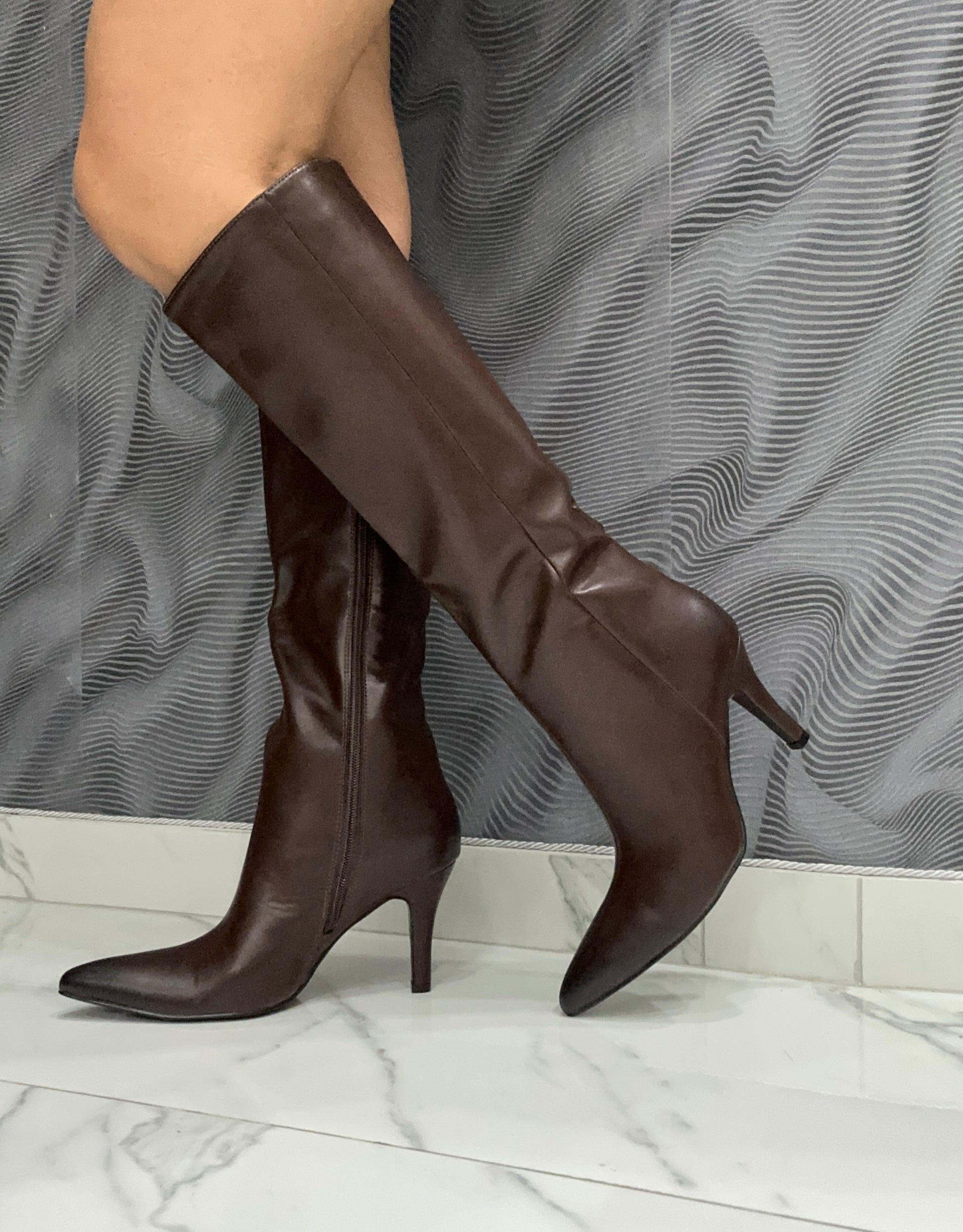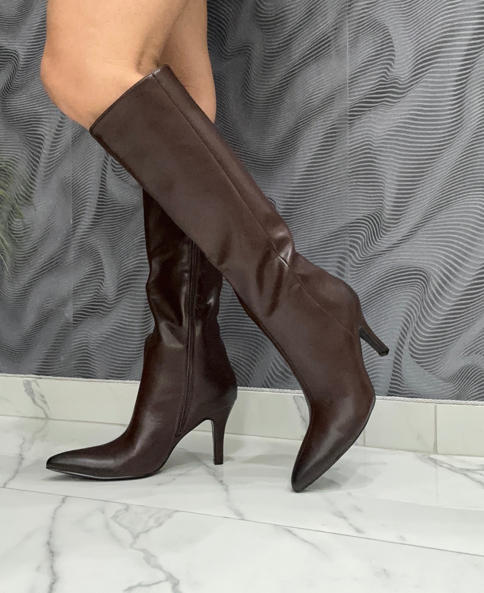 Lo stivale Magda, realizzato in ecopelle di alta qualità, combina eleganza e praticità grazie alla zip laterale che facilita la calzata. Il tacco alto 8 cm valorizza la silhouette mantenendo una postura equilibrata, mentre la calzata comoda e regolare garantisce comfort anche durante l’uso prolungato. Una scelta raffinata e funzionale per chi cerca uno stivale versatile e di classe.