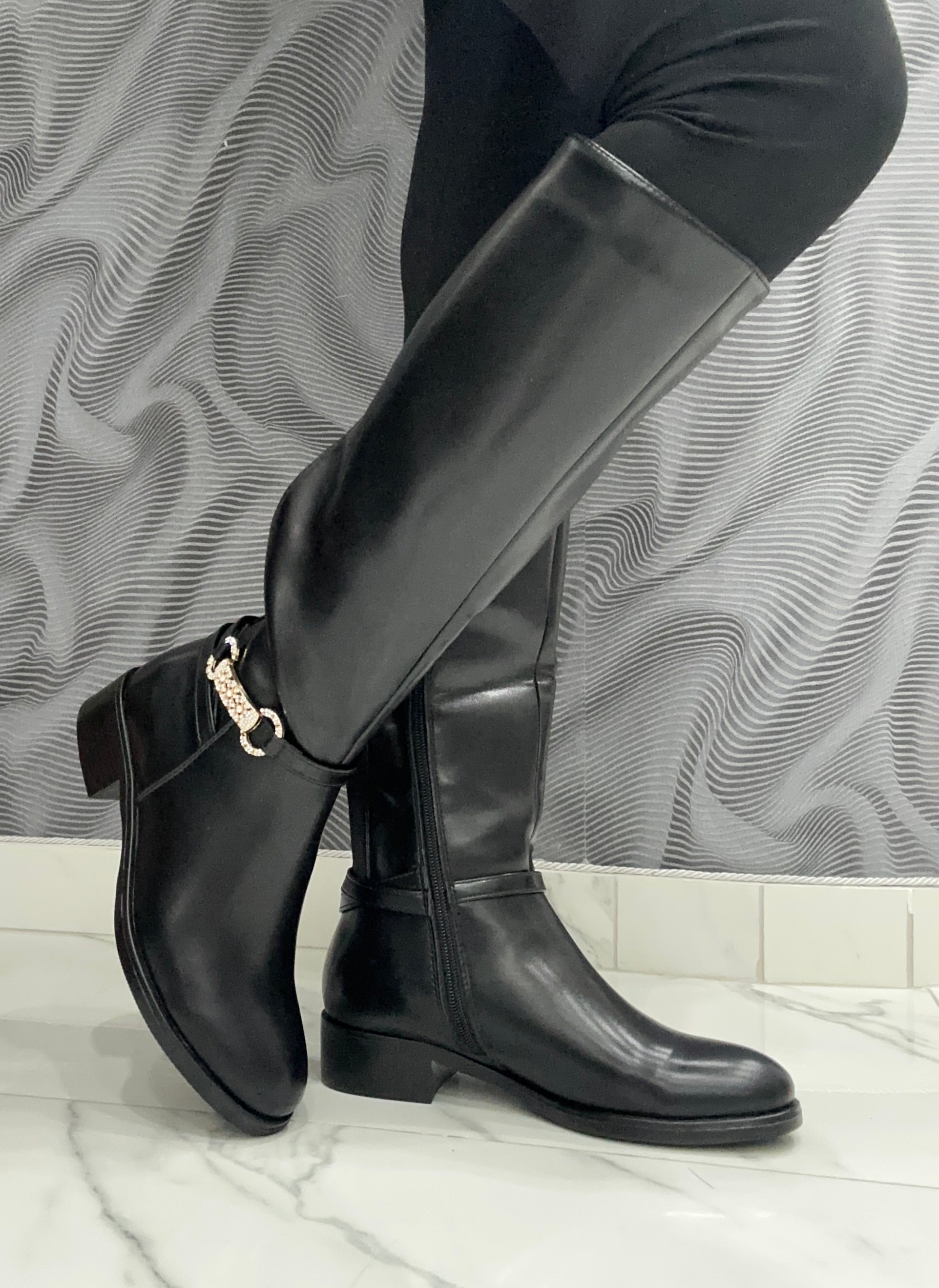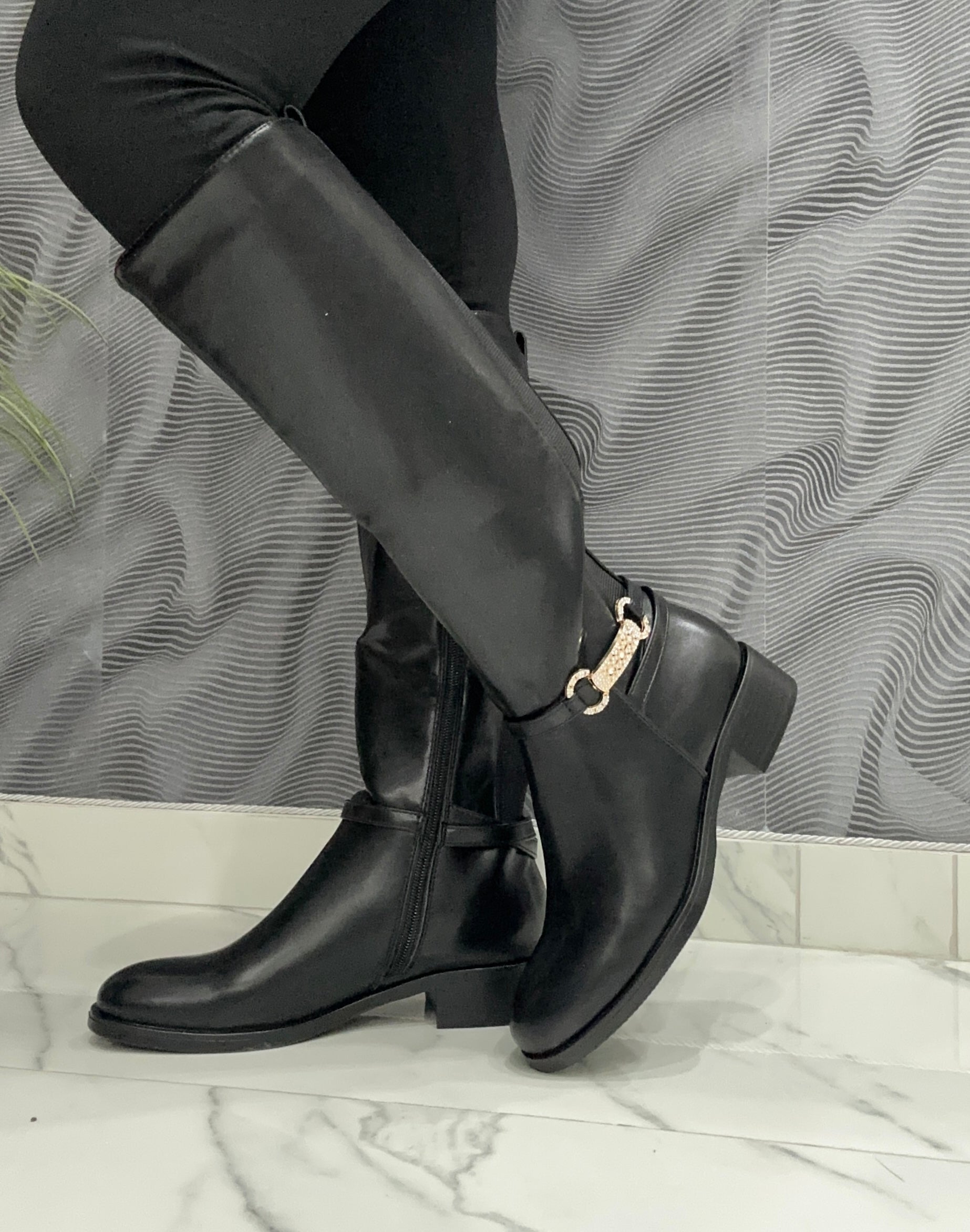 Stivale Tina in ecopelle con dettagli raffinati e praticità d'uso. Caratterizzato da elastico e zip laterale che garantiscono una vestibilità sicura e agevole, questo modello combina funzionalità e stile. L'applicazione in oro aggiunge un tocco di eleganza sofisticata, mentre la calzata comoda e regolare assicura il massimo benessere durante l'intera giornata. Una scelta versatile per chi ricerca qualità costruttiva e design contemporaneo.