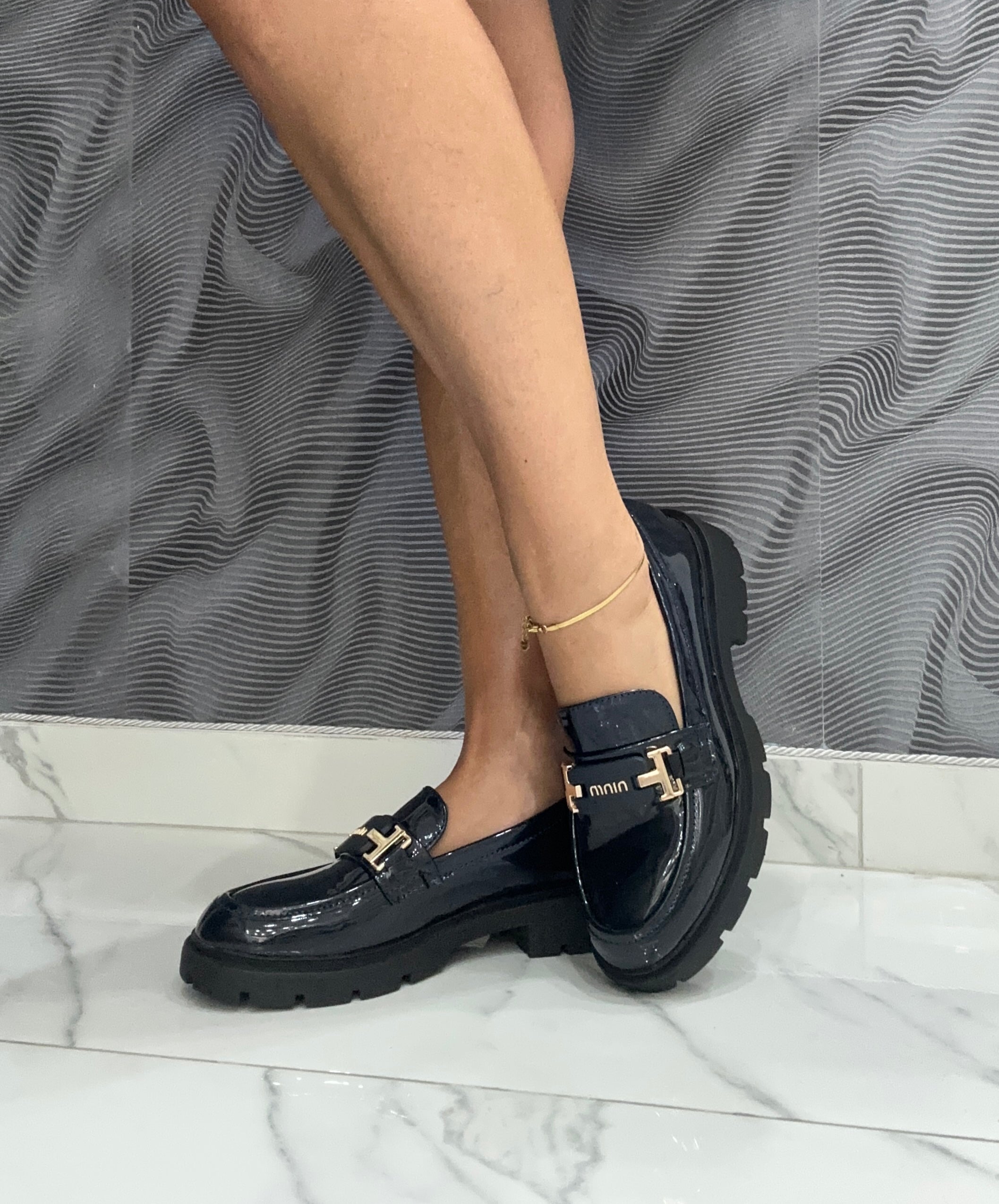 Il mocassino Fatima in vernice unisce eleganza e raffinatezza, impreziosito da un'applicazione dorata che ne esalta il carattere distintivo. La finitura lucida garantisce un aspetto sofisticato, ideale per chi cerca uno stile ricercato con dettagli di classe. Perfetto per completare outfit formali o casual chic con un tocco di esclusività.