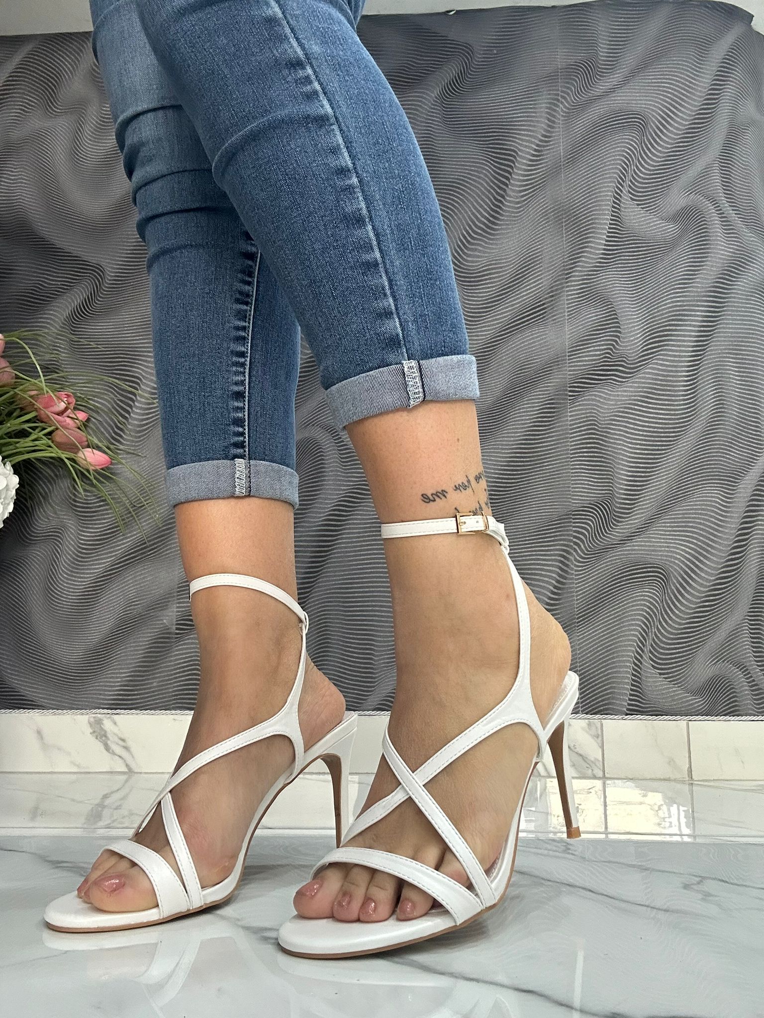 Sandalo Irene in ecopelle con tacco a spillo da 10 cm, perfetto per chi ricerca eleganza e sostenibilità. La tomaia in materiale ecologico garantisce comfort e traspirabilità, mentre il tacco sottile regala una silhouette raffinata e allungata. Ideale per occasioni serali o look sofisticati, combina stile contemporaneo con consapevolezza ambientale. Una scelta versatile che valorizza qualsiasi outfit.