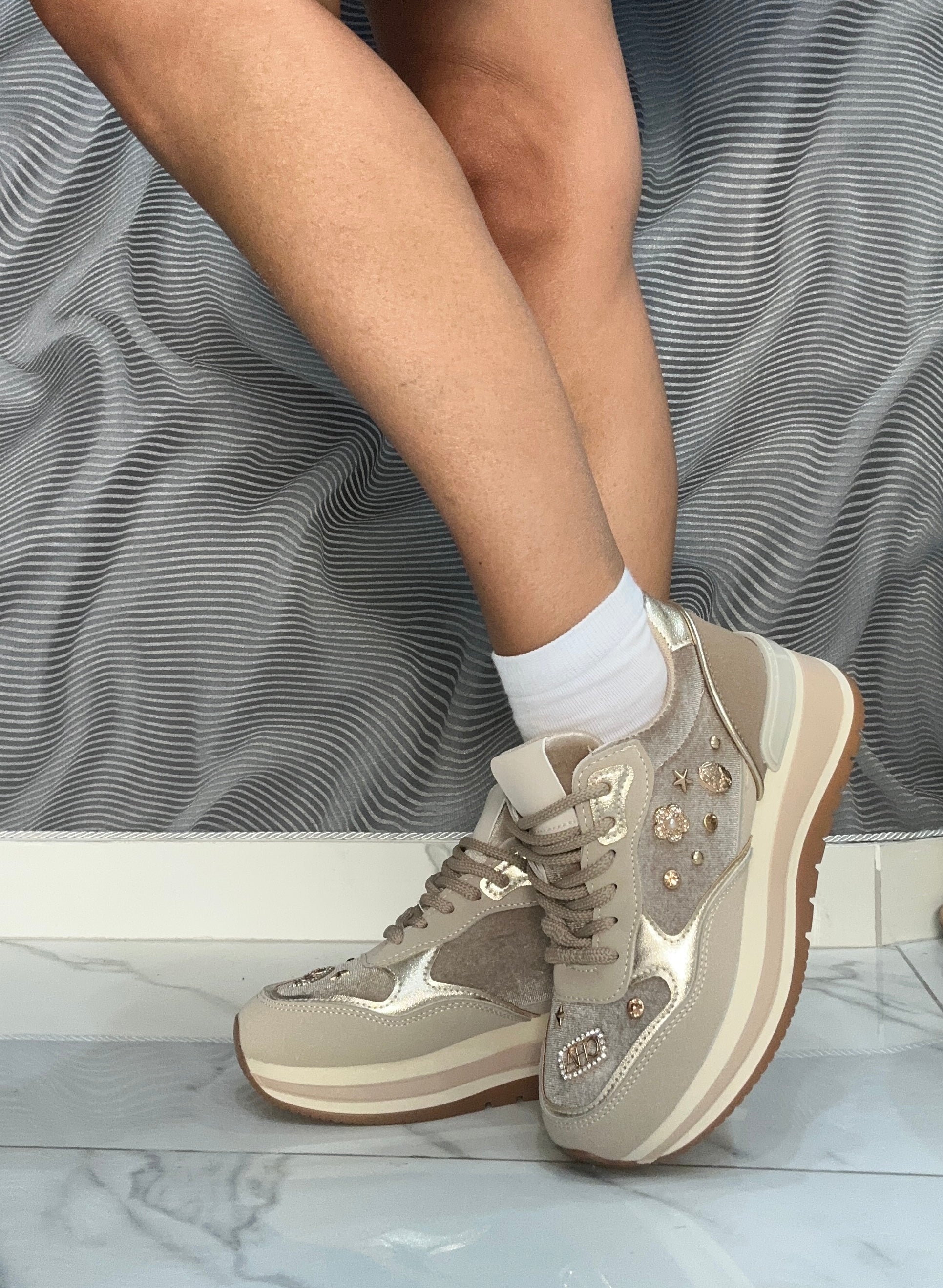Le Sneakers Chicca uniscono l’eleganza del velluto a dettagli raffinati con applicazione di charme, offrendo un design sofisticato e distintivo. Perfette per chi cerca calzature confortevoli senza rinunciare a stile e originalità, queste sneakers valorizzano ogni look con un tocco di classe discreta.