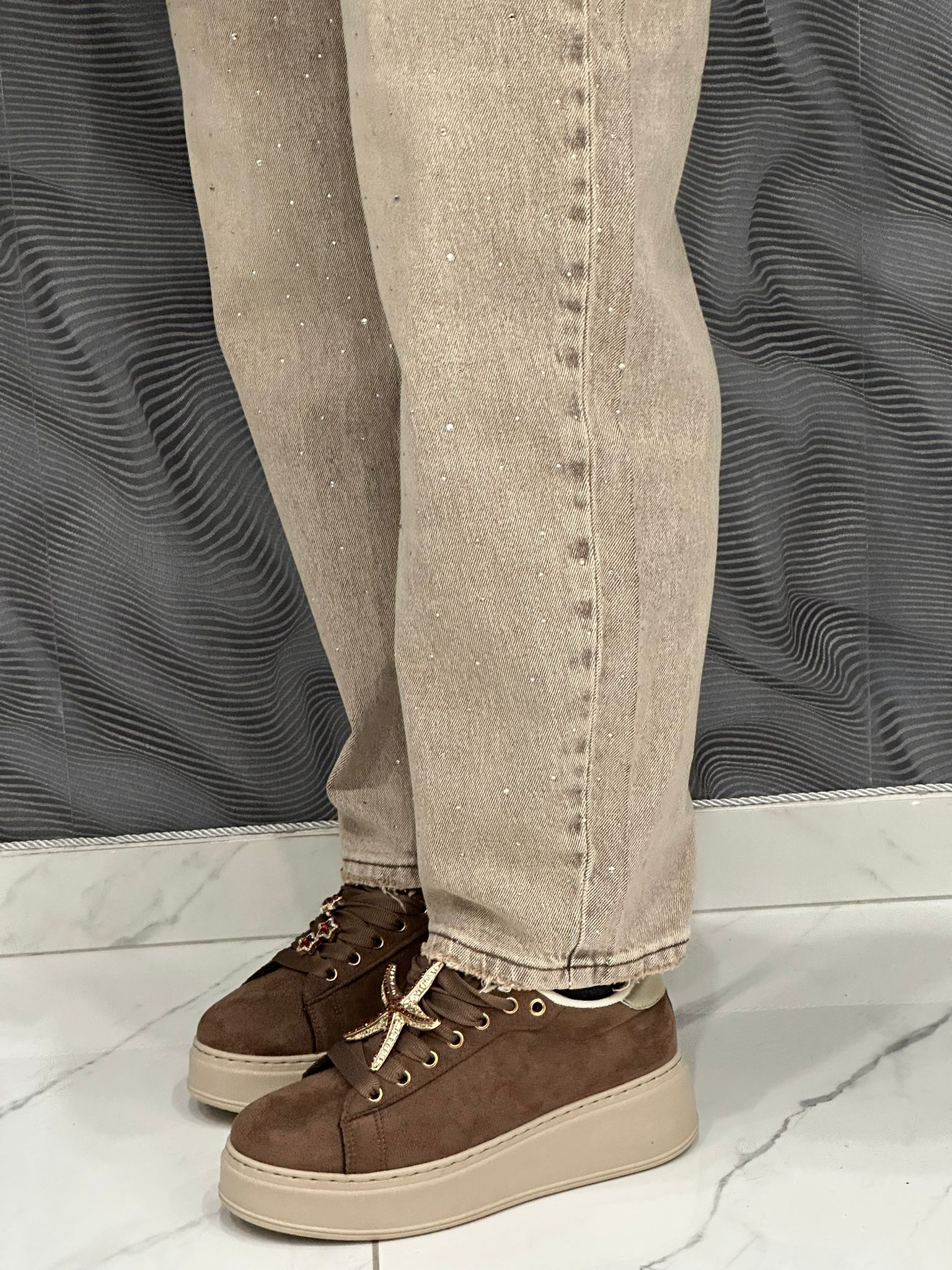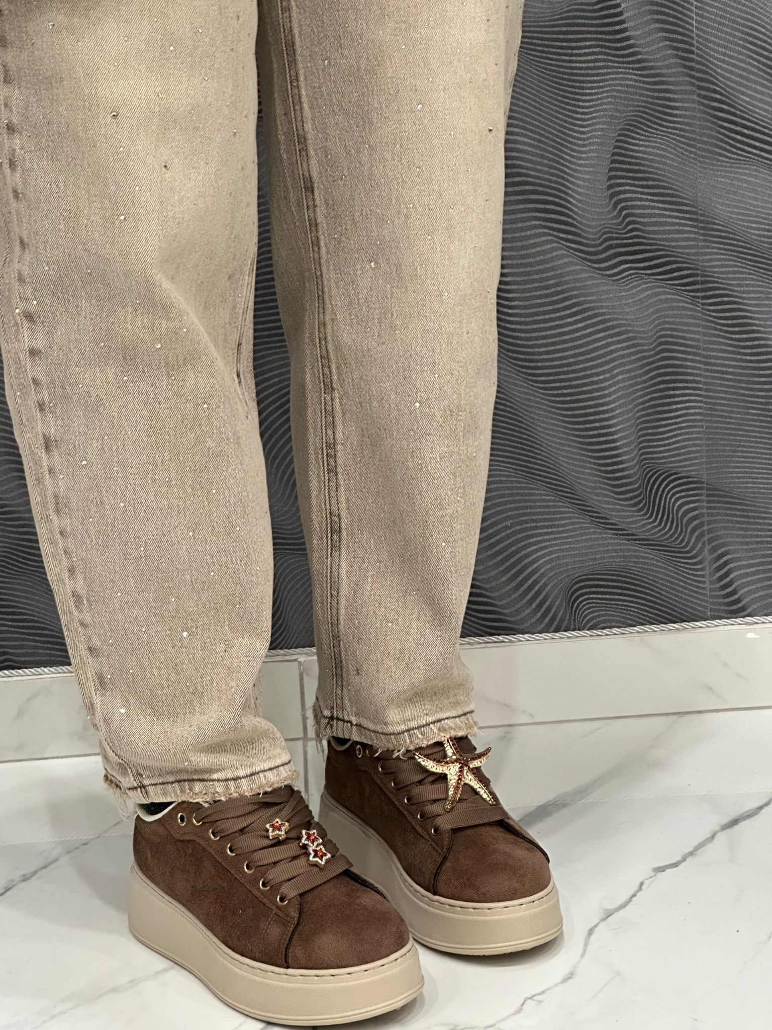 Sneakers Karol in pregiato camoscio, caratterizzate da un design sofisticato e dettagli ricercati sugli lacci. La costruzione in materiale naturale garantisce traspirabilità e comfort durante l'uso quotidiano, mentre la finitura in camoscio conferisce un aspetto elegante e versatile. Ideali per chi ricerca una scarpa che combina qualità artigianale e stile contemporaneo, perfette da abbinare a diversi outfit.