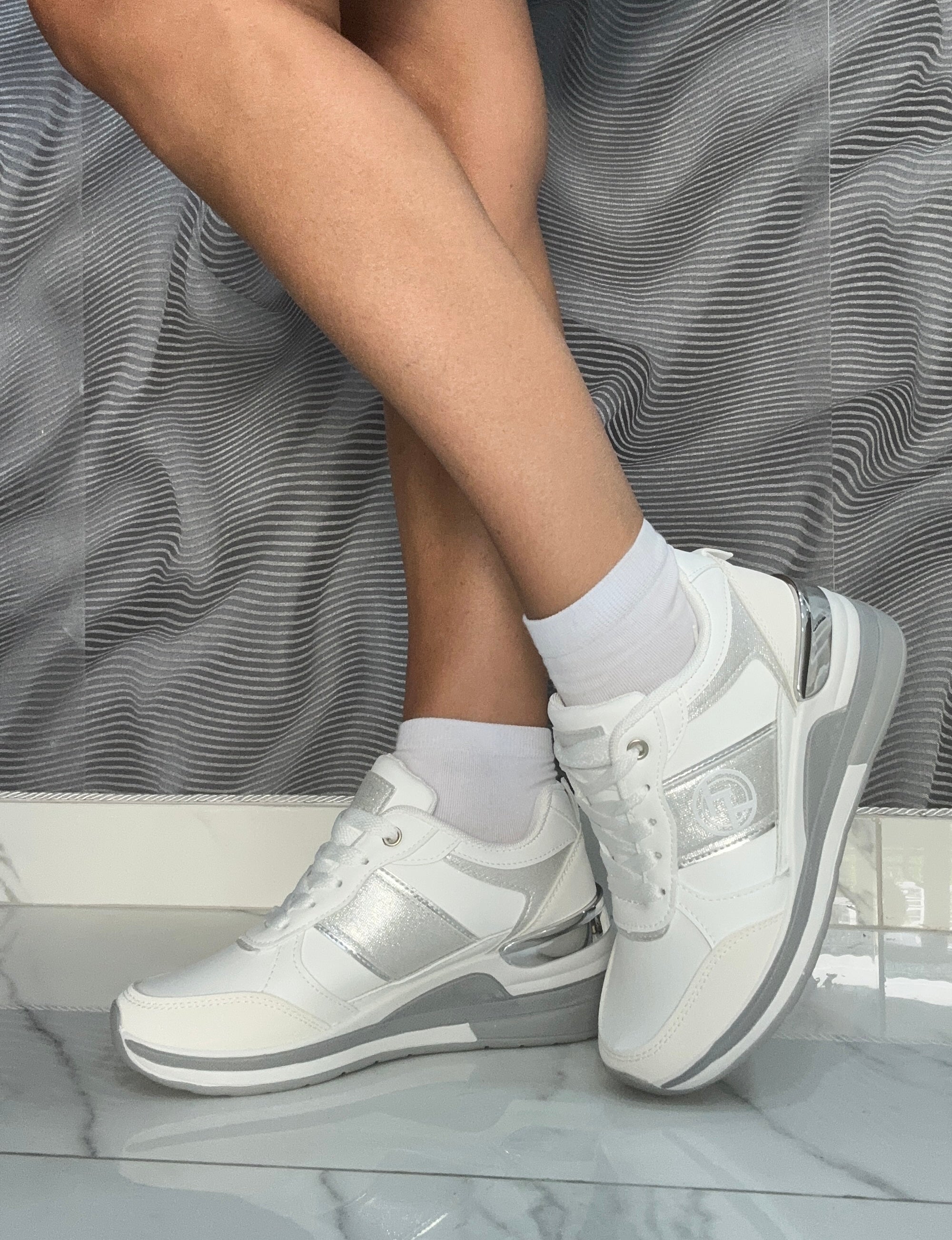 Le Sneakers Nelia combinano stile e funzionalità con un design moderno caratterizzato da un laterale laminato che aggiunge un tocco raffinato. L’altezza di 5 cm della suola offre un comfort ottimale e un leggero rialzo, ideale per chi cerca praticità senza rinunciare all’eleganza quotidiana. Perfette per completare look casual o più curati con una nota contemporanea.
